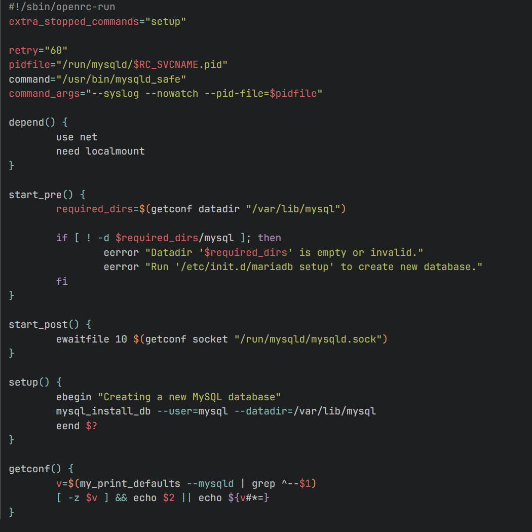 For one of the packages that I used on Alpine Linux there was a small issue with the init script, Due to some internal changes in the package some of the flags were no longer valid. I updated the init script to reflect these changes and ensure that the package would start correctly.